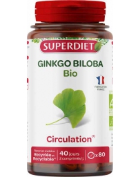 Super Diet Ginkgo Biloba Bio 80 comprimés est un complément alimentaire constitué d'un extrait de Ginkgo biloba bio équivalent à 1200 mg de feuilles de Ginkgo biloba pour 2 comprimés. Super Diet est le spécialiste des plantes médicinales bio sous forme de comprimés, gélules et ampoules de 15ml avec le logo AB Ecocert.