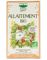 Romon Nature Tisane Allaitement Bio 20 sachets aide l'allaitement en apportant des plantes carminatives et galactagogues.