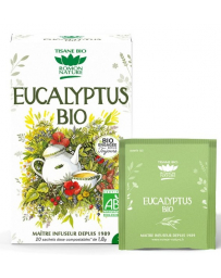 Romon Nature Tisane Eucalyptus bio 20 sachets aide les défenses naturelles de l'organisme et apporte une action émolliente sur les muqueuses respiratoires supérieures.